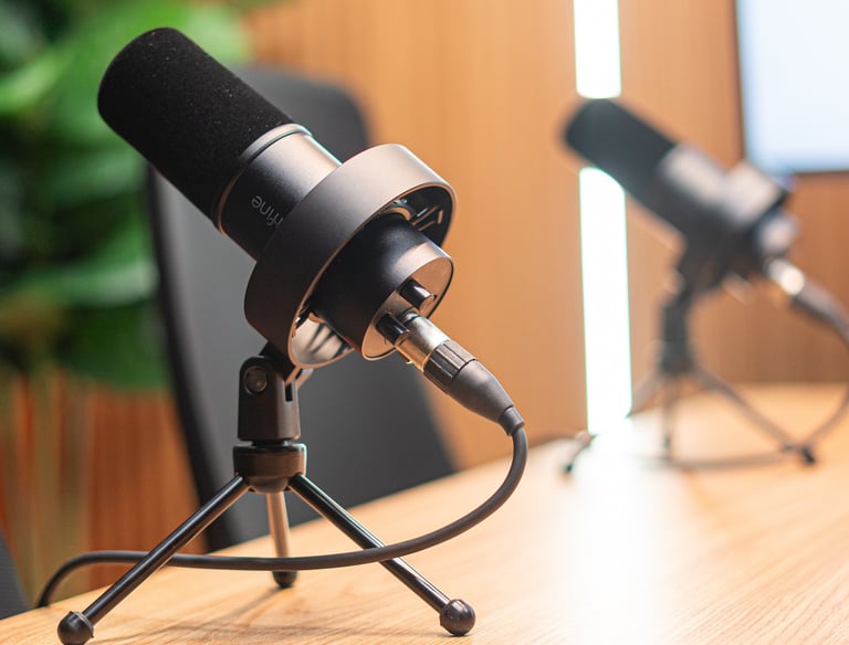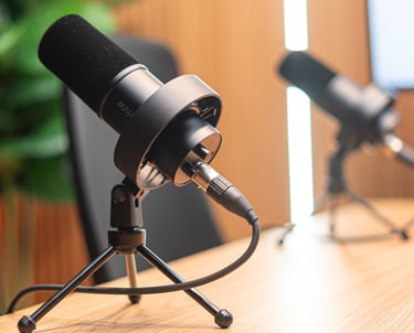 Grave seu podcast com até quatro pessoas com conforto e equipamentos profissionais.